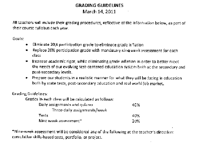 forums, projects, speeches Course Outline Daily work: Planning, reporting, collecting news, interviewing and writing segments for the HSTV News and the school newspaper. Simultaneously the district yearbook will be planned and edited. There are no extra credit assignments other than what might show up on a test so you are advised to take advantage of every opportunity given but do not ask for other extra credit – Manage your time wisely and, use your listening and note-taking skills in addition to the resources shared. Finish work by deadline; ample time will be given for each assignment. If you have questions, ask Mr. Janes and no one else if you want the correct answer. Again, deadlines are non-negotiable. If you need to finish late work, after school (not during) is the only time for that. If you have a conflict with another activity, that is your problem and your decision. Mr. Janes is not available before school. * Please note: Completely original work is expected; plagiarism will be easily detected resulting in a zero for the assignment and referral to the administration per district policy. All work will be scrutinized using online tools that detect plagiarism. There is never an excuse. You will learn how to correctly cite sources and be expected to do so. Any work not cited will be considered plagiarized; as a result you will receive zero points on the final draft, resulting in an "F" for the Paper. This is your warning. Classroom PoliciesClassroom respect and appropriate behavior is expected: · Rule #1: Mr. Janes has only one, simple rule regarding behavior: Don’t waste his time and he won’t waste yours. o If you aren’t positive as to what might be wasteful, review your student handbook. · Rule #2: Always remember: o Education is not something done to you, rather, it's done for you. o The word "can't" translates as, "I Clearly Am Not Trying." Computer Lab/Laptop/Classroom Computer Rules: · Regarding food and drink, review your student handbook. · Your workstation is your responsibility and you must clean up after yourself. If you leave your workstation unlike you found it, you will be held responsible. · Print only with permission. · Zero-tolerance policy regarding unauthorized surfing. Stay and work only on-task. Infractions result in time after school, partial loss of credit, full loss of credit and ultimately suspension from the network. Network Expectations: We save some of our work to our classroom folders on the network. Beyond making sure you always back up your work, you will be responsible for knowledge of file management such as: · Computer/network/Internet ethics · Correct location/folder · Destination and retrieval of files If you cannot access the network or Internet for any reason, you are still responsible for that work. If this is the case, you will be held responsible to find a solution, not Mr. Janes. Again, BACK UP YOUR WORK. Use the online storage solutions Mr. Janes will share with you. If you back up, broken thumb-drives, lost CD-ROMs and emails that mysteriously never reach their target are not an issue. To repeat: You will be accountable for the choices you make. See your handbook to review Internet and computer rules. If you break a rule, you will be caught and lose your Internet/computer privileges per district policy. Some work is done and handed in online and via the network. If you lose your privileges, it will be your responsibility to find a way to accomplish and submit your work. Again, you are responsible for your work being handed in, even if you lose your privileges. Mr. Janes will not have his time wasted (see rule #1) creating alternate assignments because of your decision. Listening and Working Skills: · When doing group work, you may confer with your classmates. · When doing individual work, you need to work as an individual, by definition. Do not ask others for the answers. Do the individual work assigned alone as it was assigned for the purpose of mastery. Ask only Mr. Janes if you have a question regarding the assignment. Language: The language you use will be appropriate to the task, most often formal (ask Mr. Janes when in doubt). · In the interest of mastery of the communication skills you'll need in the workplace or college, you will always be graded for spelling, punctuation and grammar. · Proofread everything you do. A suggestion: consult a dictionary and/or a peer, teacher or parent. o BEWARE OF SPELL CHECK as it can suggest the wrong word or misunderstand your context. Late Work Policy: An emergency on your part does not become one for Mr. Janes. · All assignments are due at the beginning of the class period on their due date. If you’re doing the work while the rest of the class is otherwise engaged, you’re not paying attention and this establishes a pattern to avoid. o District late work policies are in effect in case of an excused absence. o If you are absent for any reason, consult Mr. Janes’ website or contact him to see what you missed. § Mr. Janes is not responsible for getting your make-up work to you. · If you don’t have an assignment when due, it is automatically ½ credit. o You have until the end of school that day to hand in the late work. Mr. Janes will stay late if need be. o After that, it is a zero in the grade book. Extra Credit: In the workplace and college, there is no extra credit. To best prepare you for that real world outside this classroom, none will be offered for any class. There will be ample time given to complete all assignments in class. Manage your time and this will not be an issue for you. Again, no extra credit will be offered, so please do not ask - instead, prioritize the abundant time you now have. Plagiarism: · Plagiarism is copying the the whole or part of another's work and presenting it as your own. o This applies to all forms of writing and media such as photographs, clip art, audio, video, etc. o The rule of thumb is if anything needs sources, you must co